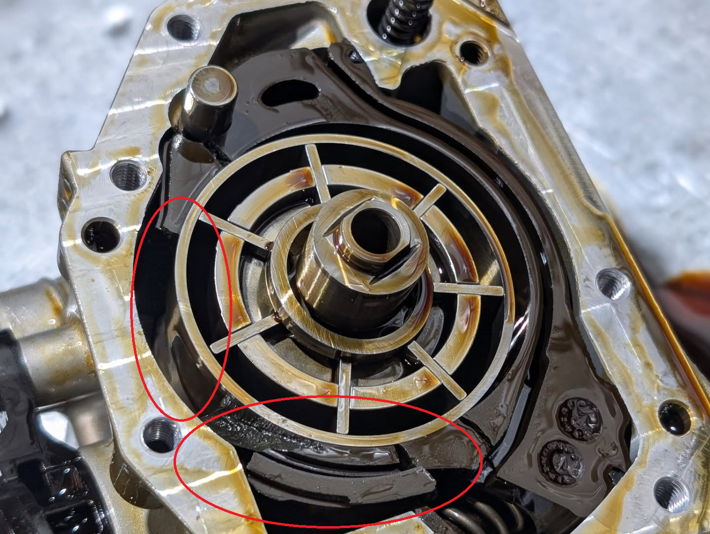 Here is how the oil pump looks after the damage: