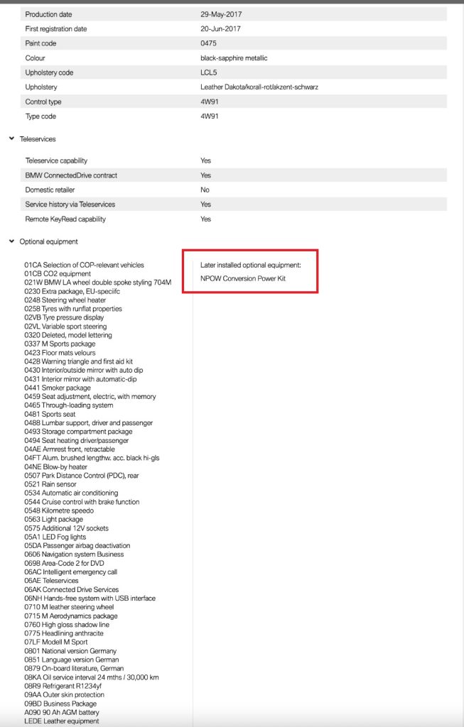 f. when checking (requesting to the dealer) data in the BMW AG Online system, this VO addition should be visible!