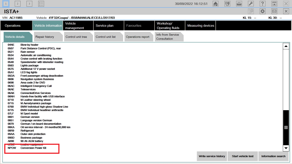 e. when checking the car in the ISTA+ identification menu, at the end of VO options, the following record should be present: