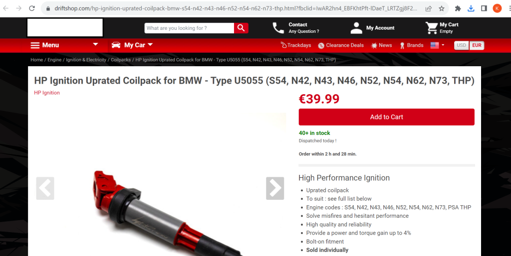 And now let’s check the offer of the “sports” ignition coils – they can be used for N42, N46 (the old port engines), N63(DI engine), and even N43! How is that possible? The perfect universal coil? Turns out – the cheapest China ignition coil is suitable for everything.
